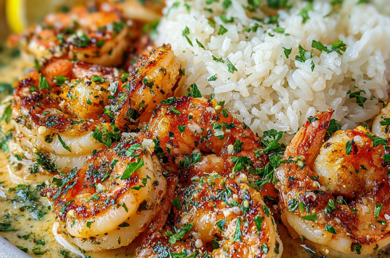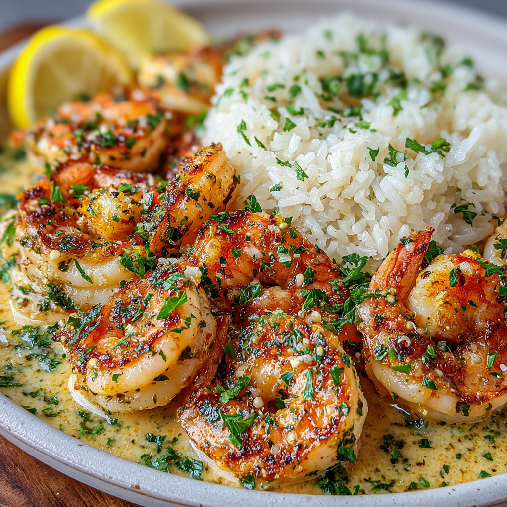 Savourez des Crevettes au Beurre Aillé avec Riz